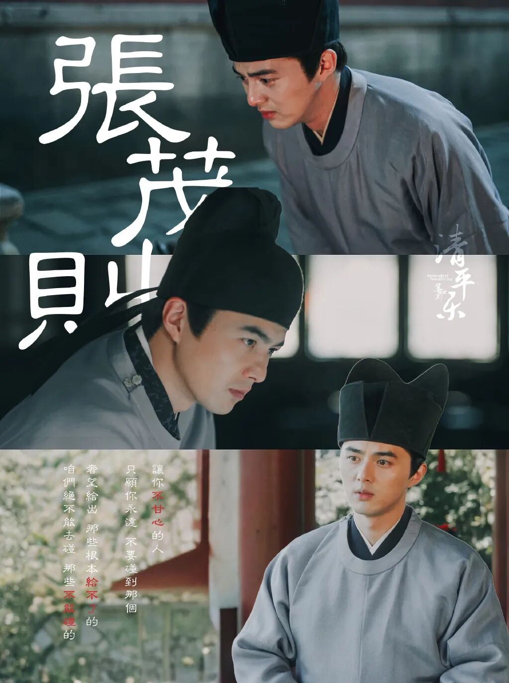 他在剧中饰演内侍张茂则时,他的脸不再那么光滑,眼角眉梢有了沧桑,眼神也不再清亮飞扬而是多了沉稳和欲说还休。